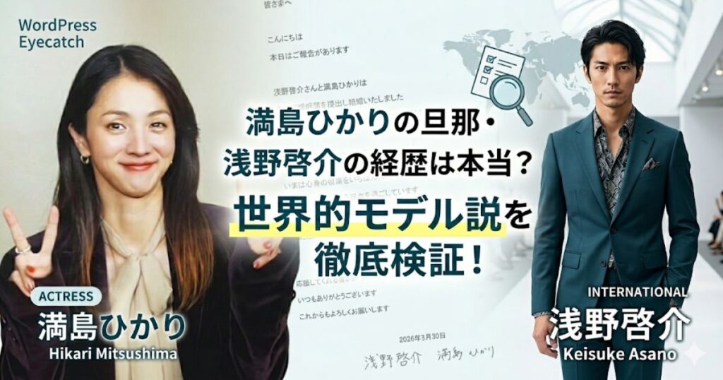 女優として唯一無二の存在感を放ち、数々の名作に出演してきた満島ひかりさん。 そんな満島ひかりさんですが、2025年に結婚を発表した旦那・浅野啓介さんの経歴が「世界的モデル」として話題になっていますよね。 浅野啓介さんは本当に世界で活躍したトッ... -